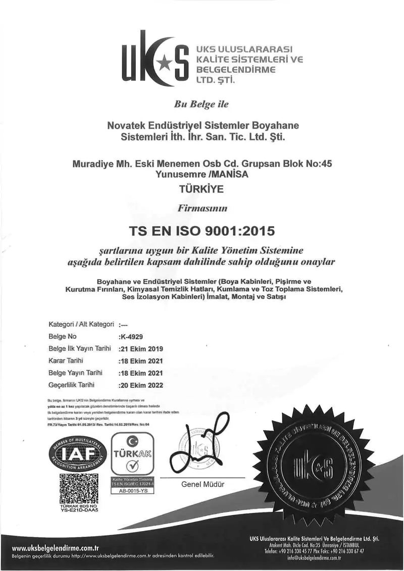 Novatek Endüstriyel’de Kalite Politikası, her projede teslimatın “çalışıyor” seviyesinde kalmadığı; performansı ölçülebilir, dokümantasyonu denetlenebilir ve uzun dönem işletmede sürdürülebilir bir standartla yönetildiği bir sistem yaklaşımıdır. ISO 9001:2015 temelinde; müşteri şartnameleri, yürürlükteki mevzuat ve uygulanabilir teknik standartlara tam uyumu esas alır, Kalite Yönetim Sistemimizi sürekli iyileştirmeyi kurumsal taahhüt olarak benimseriz.
